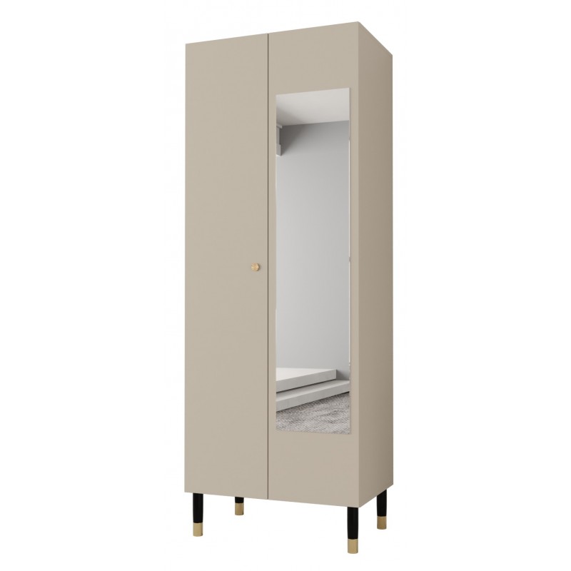 Garderoba PALERMO to mebel wykonany w stylu glamour z wykorzystaniem modnych paneli tapicerowanych, wysokie drewniane nogi ze złotymi obrzeżami dodają funkcjonalności i podkreślają styl garderoby. Elegancki design, wybór kolorystyki paneli, a także rodzaju uchwytu pozwoli na dowolne zaaranżowanie garderoby w Państwa przedpokoju!