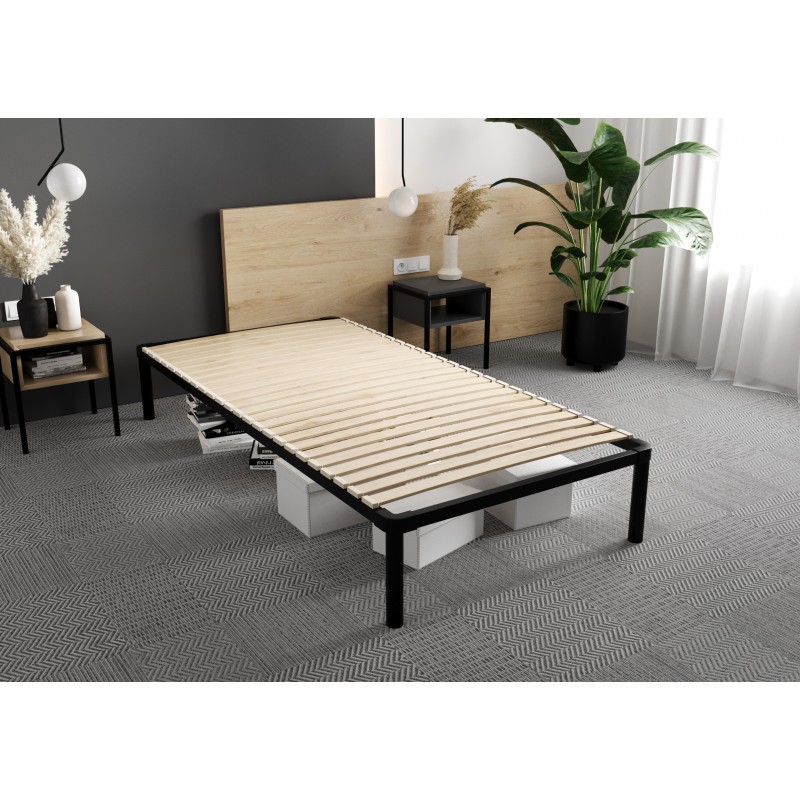 Łóżko LACHTI charakteryzuje się swoją prostotą, idealne rozwiązanie gdy pojawia się dylemat jakie łóżko wybrać do sypialni. Metalowa konstrukcja zapewnia stabilność łóżka a listwy stelaża utrzymają każdy materac.