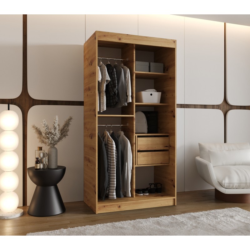 Szafa przesuwna garderoba z lustrem do salonu LUCY 120 artisan, biały, czarny, kaszmir, sonoma, orzech