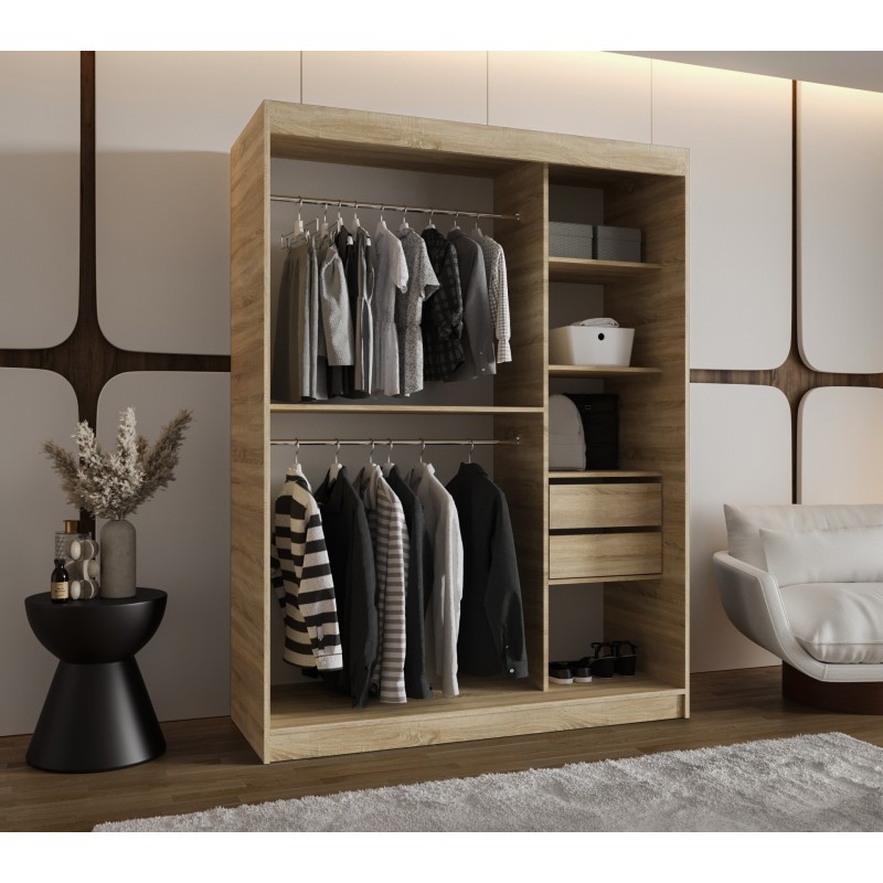 Szafa przesuwna garderoba z lustrem do sypialni LUCY 180 artisan, biały, czarny, kaszmir, sonoma, orzech