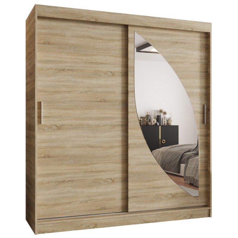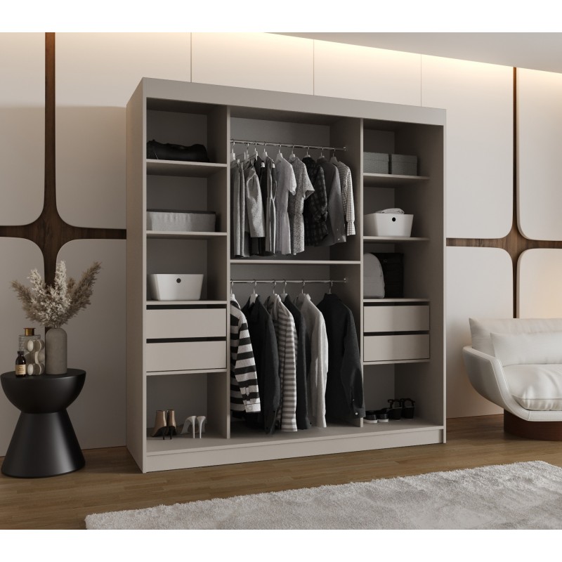Szafa przesuwna garderoba z lustrem do przedpokoju MILO 200 artisan, biały, czarny, kaszmir, sonoma, orzech