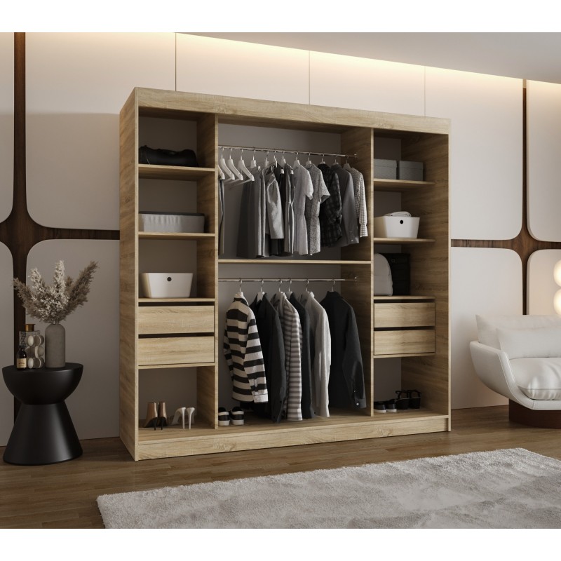 Szafa przesuwna trzydrzwiowa garderoba z lustrem i drążkami MILO 250 artisan, biały, czarny, kaszmir, sonoma, orzech