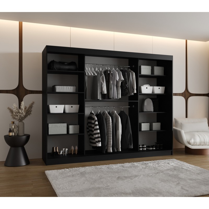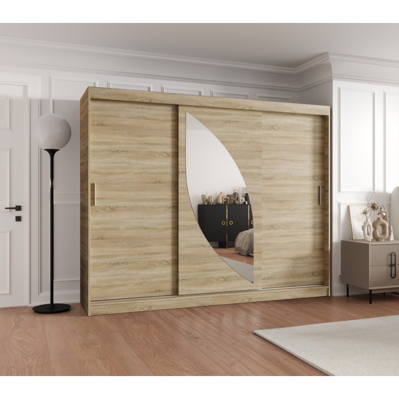 Szafa przesuwna garderoba z lustrem do przedpokoju MILO 200 artisan, biały, czarny, kaszmir, sonoma, orzech