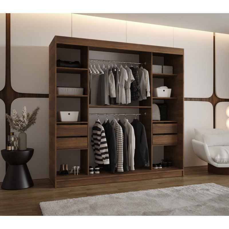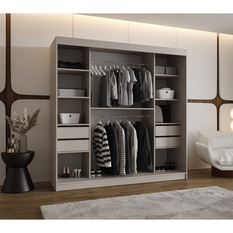 Szafa przesuwna garderoba z lustrem do sypialni MOKA 180 artisan, biały, czarny, kaszmir, sonoma, orzech