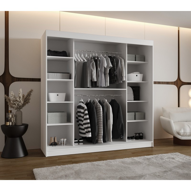 Szafa przesuwna trzydrzwiowa garderoba z lustrem i drążkami MOKA 250 artisan, biały, czarny, kaszmir, sonoma, orzech