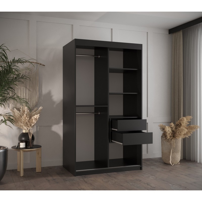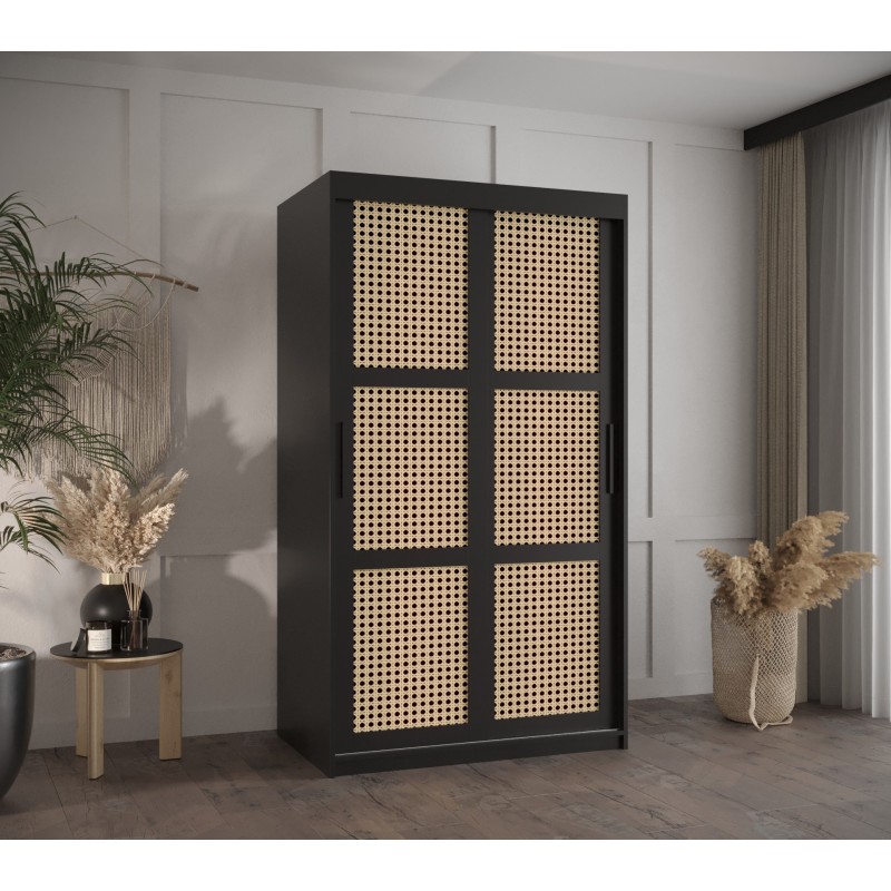 Szafa przesuwna garderoba mieszkaniowa pojemna PLECIONKA WIEDEŃSKA 120 czarna biała