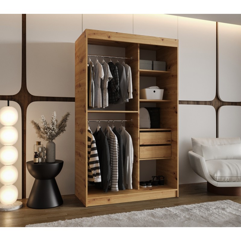 Szafa przesuwna garderoba z lustrem do kawalerki ROYAL 100 artisan, biały, czarny, kaszmir, sonoma, orzech
