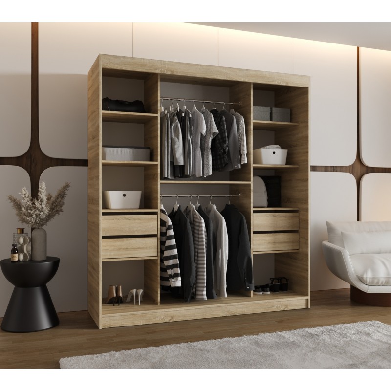 Szafa przesuwna garderoba z lustrem do przedpokoju ROYAL 200 artisan, biały, czarny, kaszmir, sonoma, orzech