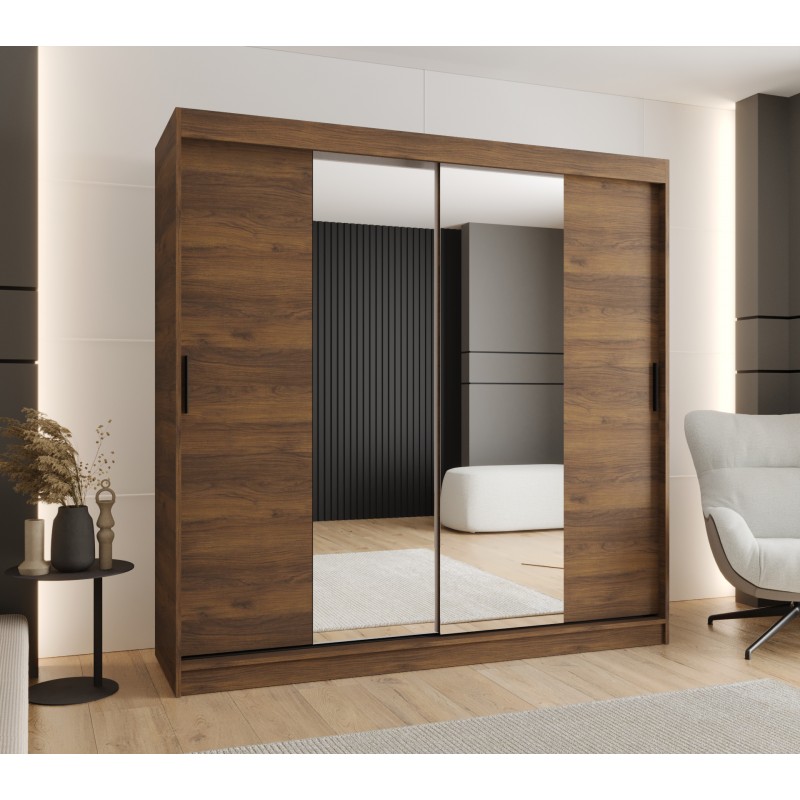 Szafa przesuwna garderoba z lustrem i drążkiem RUBINO T1 180 kaszmir orzech warmia