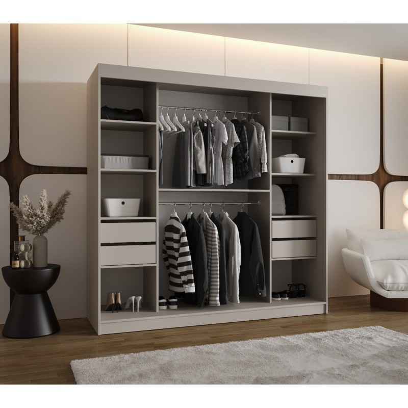 Szafa RUBINO jest szafą wykonaną w nowoczesnym i jednocześnie ponadczasowym stylu. Szafa dostępna w sześciu różnych rozmiarach. Za dodatkową opłatą szafę można wyposażyć w szuflady oraz samodomykacz.