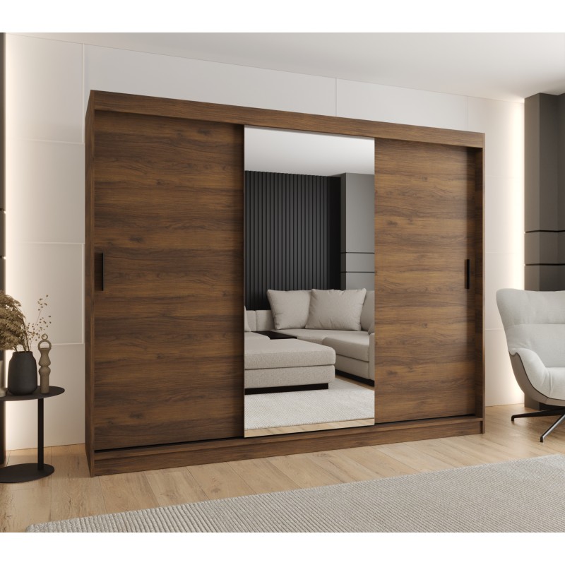 Szafa przesuwna garderoba z lustrem i drążkiem RUBINO T1 100 kaszmir orzech warmia