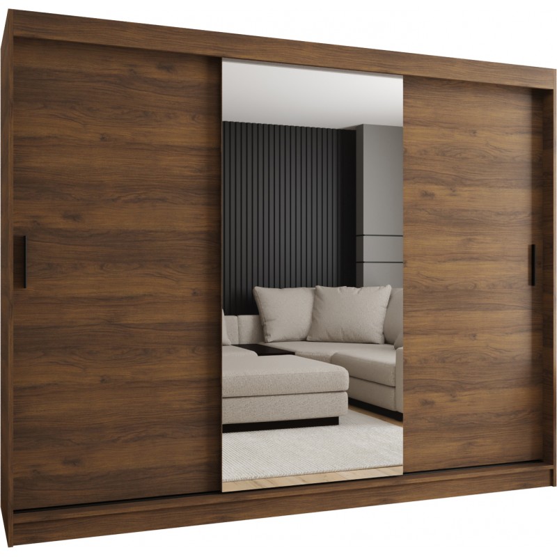 Szafa przesuwna garderoba z lustrem i drążkiem RUBINO T1 200 kaszmir orzech warmia