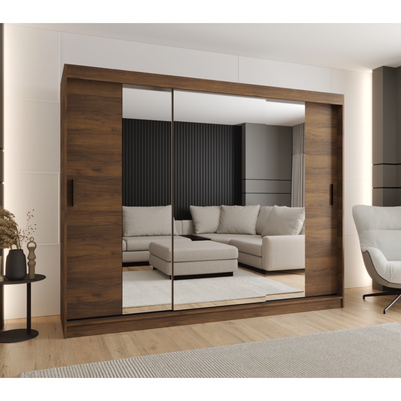 Szafa przesuwna garderoba z lustrem i drążkiem RUBINO T2 100 kaszmir orzech