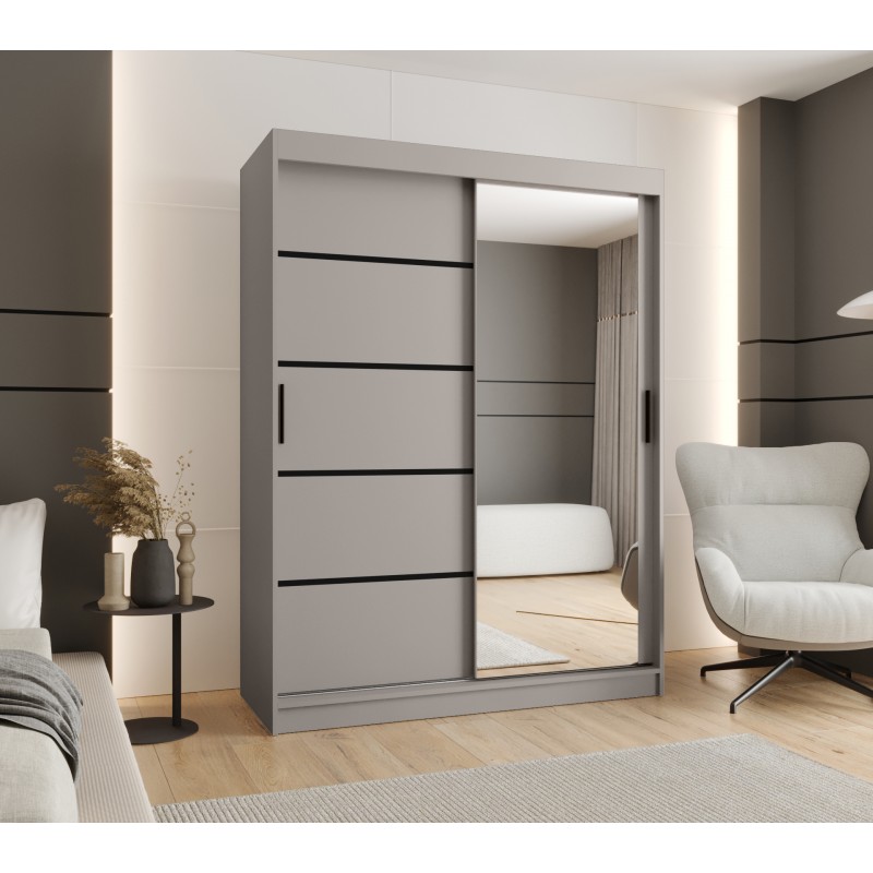 Szafa przesuwna garderoba z lustrem i drążkiem RUBINO V2 120 kaszmir orzech warmia