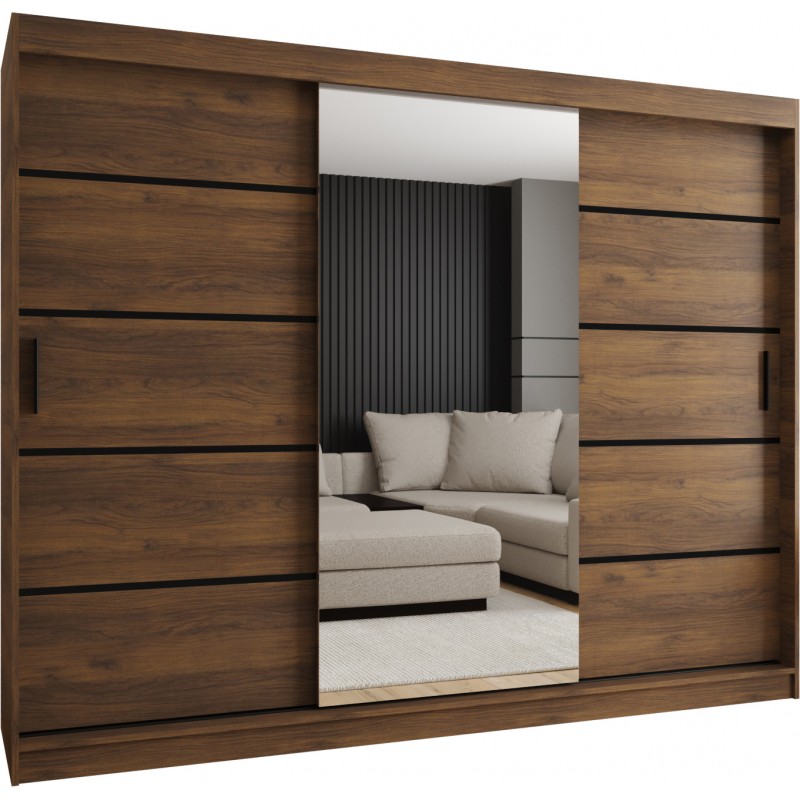Szafa przesuwna garderoba z lustrem i drążkiem RUBINO V2 200 kaszmir orzech warmia