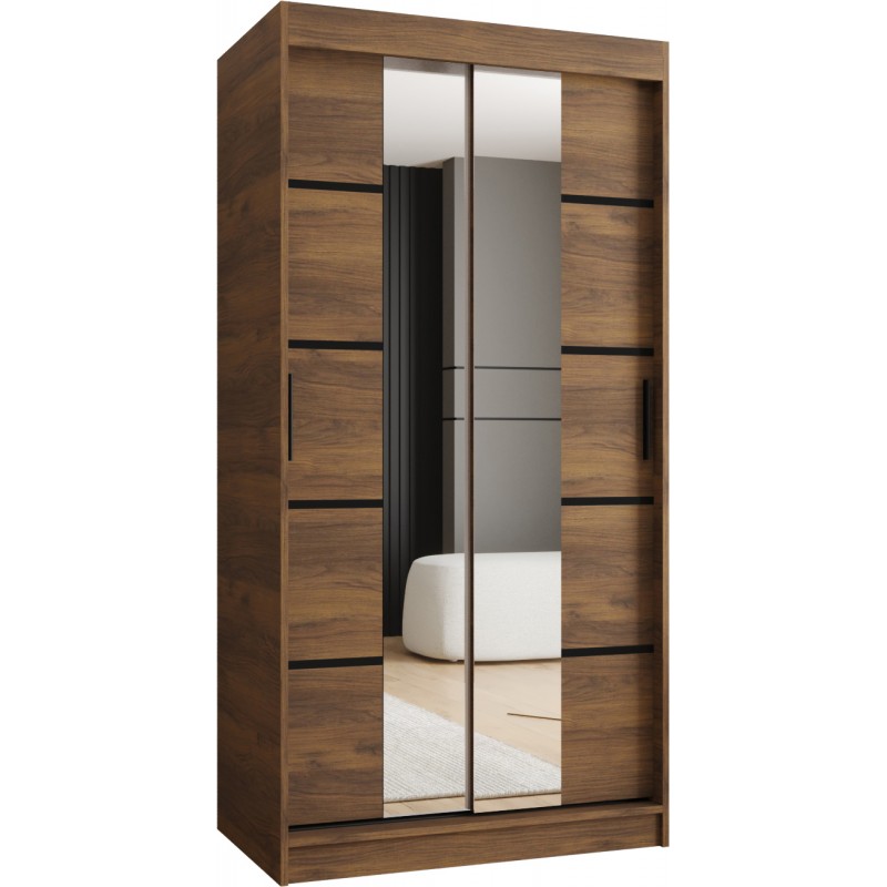 Szafa przesuwna garderoba z lustrem i drążkiem RUBINO V4 120 kaszmir orzech warmia