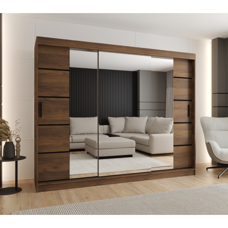 Szafa przesuwna garderoba z lustrem i drążkiem RUBINO V4 200 kaszmir orzech warmia