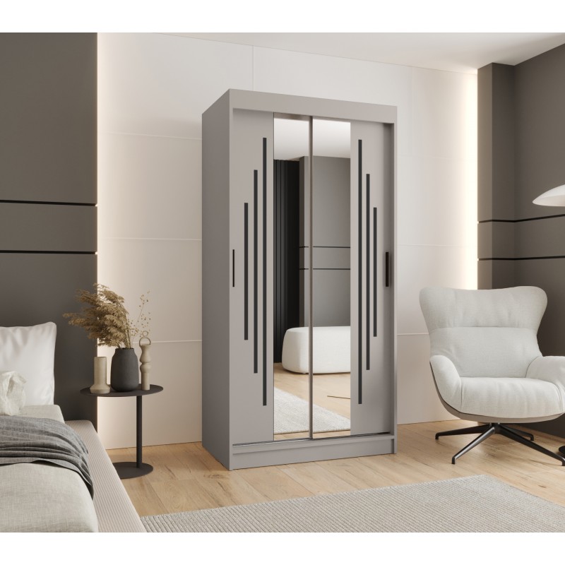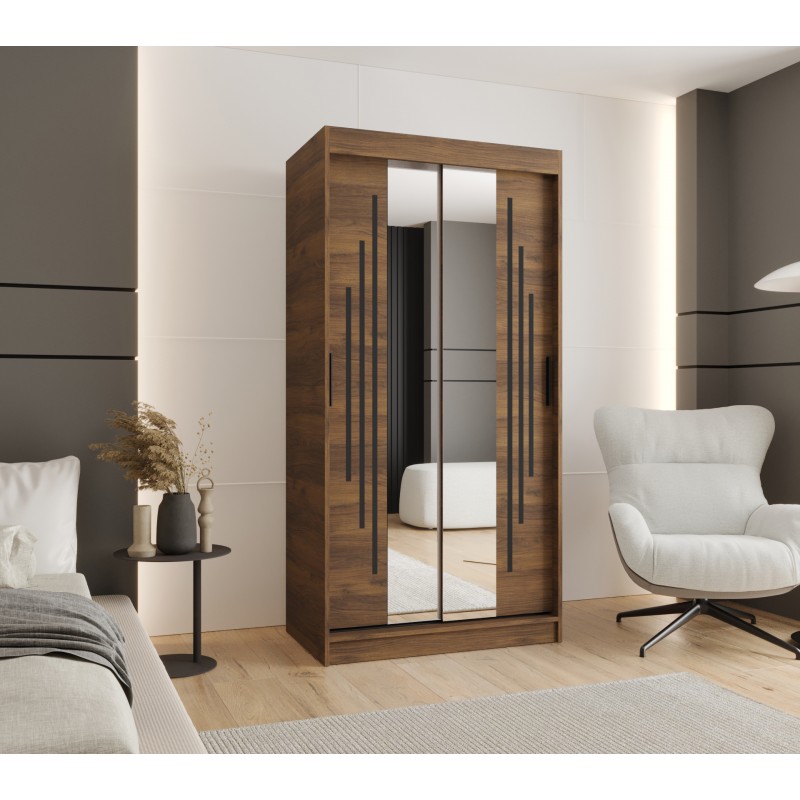 Szafa przesuwna garderoba z lustrem i drążkiem RUBINO Y1 120 kaszmir orzech warmia