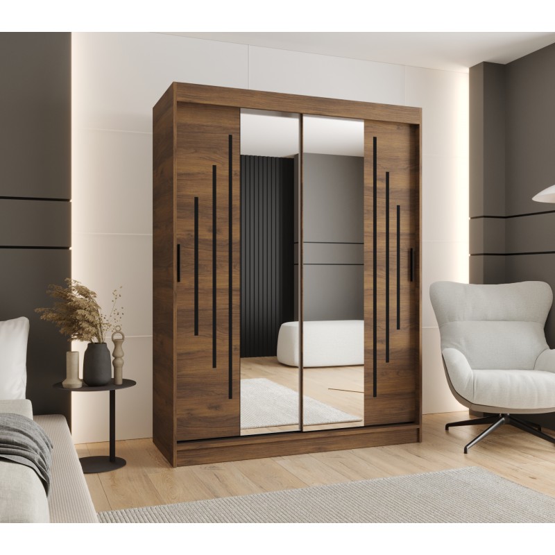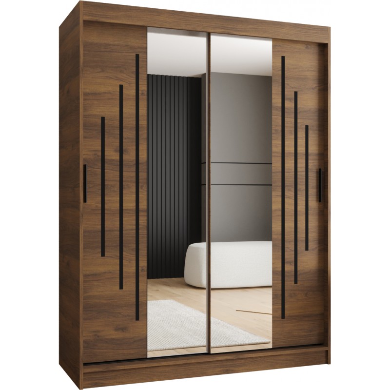 Szafa przesuwna garderoba z lustrem i drążkiem RUBINO Y1 180 kaszmir orzech warmia