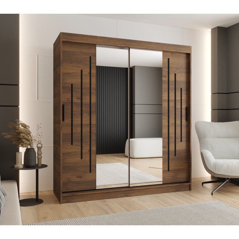 Szafa przesuwna garderoba z lustrem i drążkiem RUBINO Y1 200 kaszmir orzech warmia