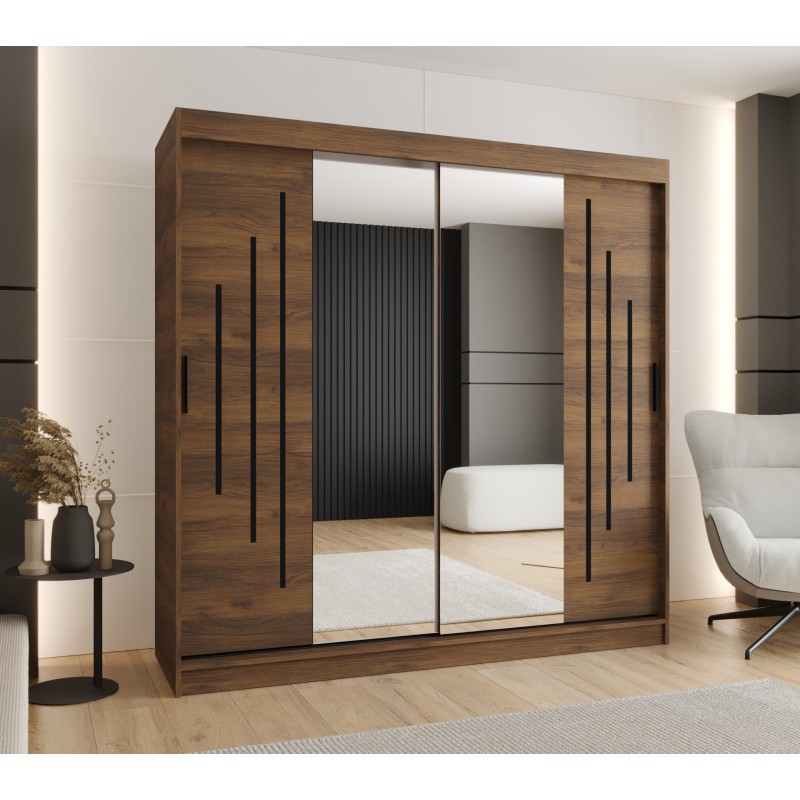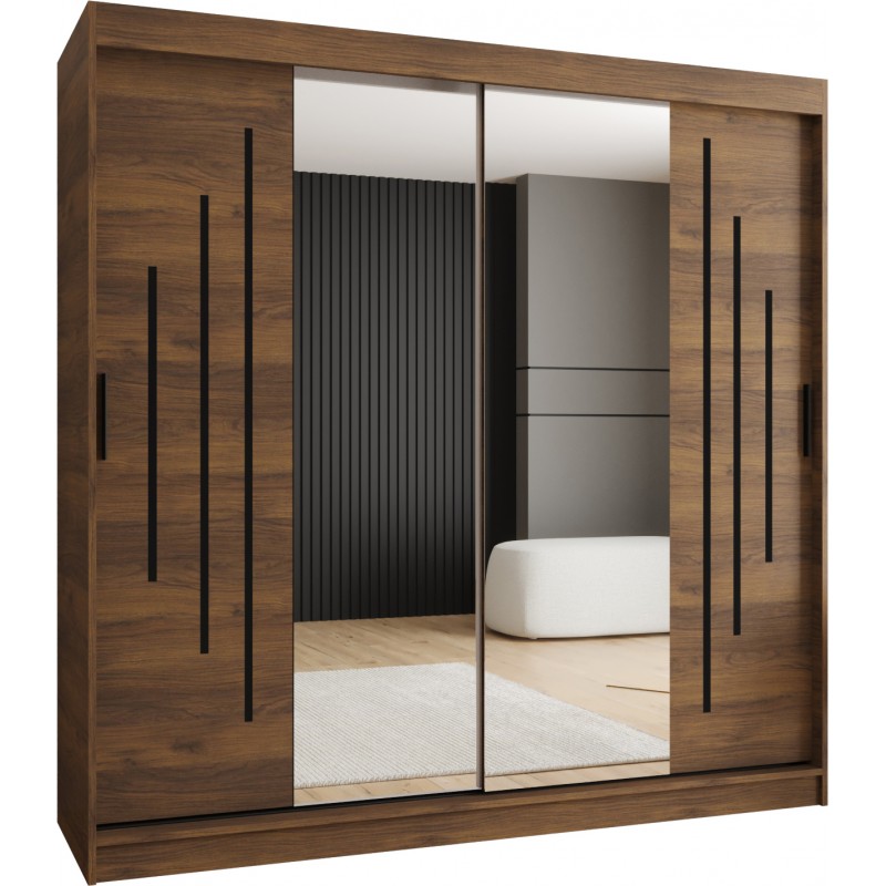 Szafa przesuwna garderoba z lustrem i drążkiem RUBINO Y1 180 kaszmir orzech warmia
