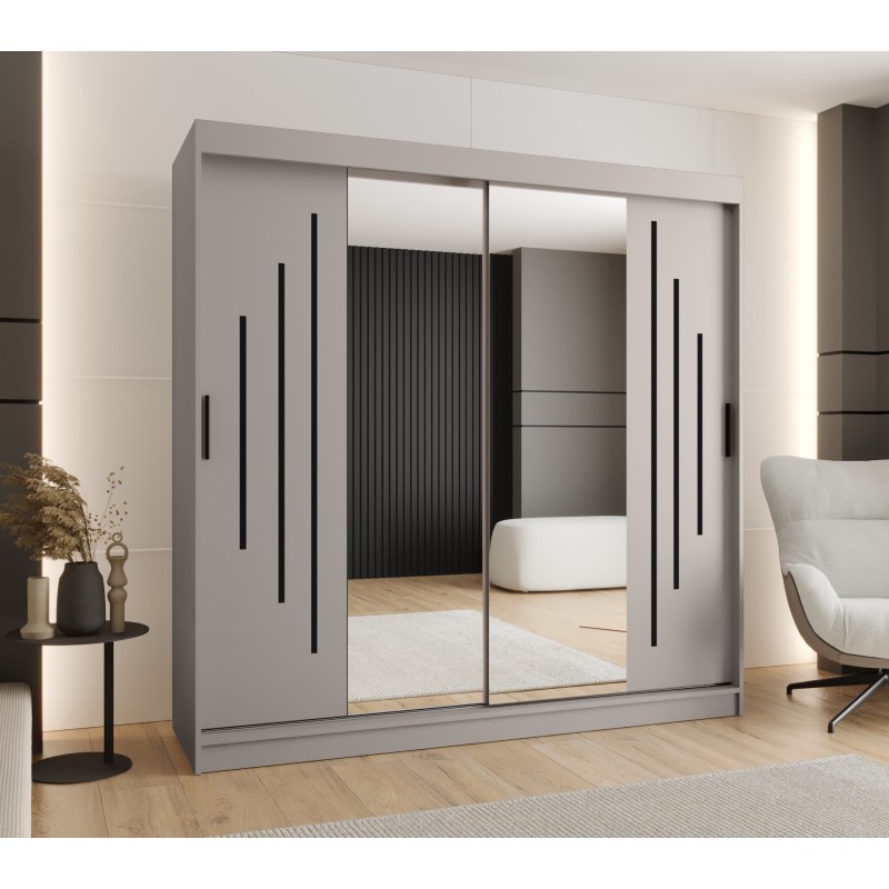 Szafa przesuwna garderoba z lustrem i drążkiem RUBINO Y1 250 kaszmir orzech warmia