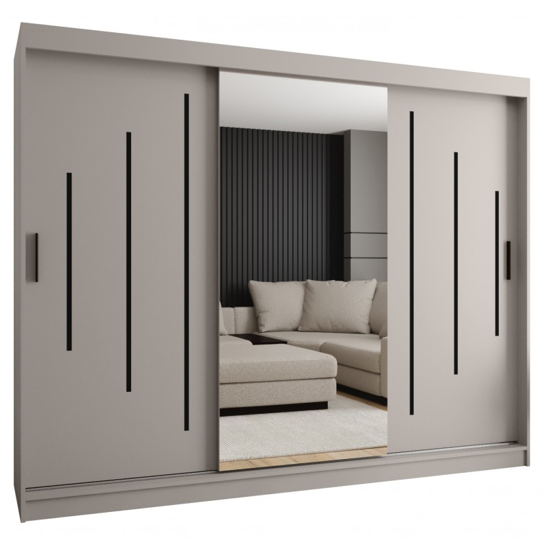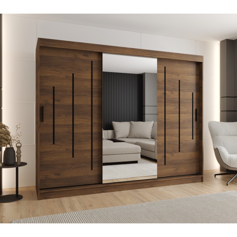 Szafa przesuwna garderoba z lustrem i drążkiem RUBINO Y1 200 kaszmir orzech warmia