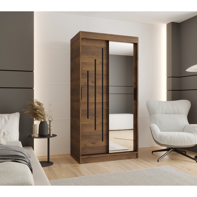 Szafa przesuwna garderoba z lustrem i drążkiem RUBINO Y2 120 kaszmir orzech warmia