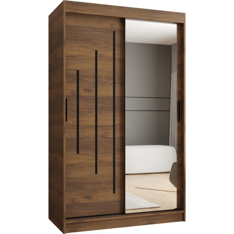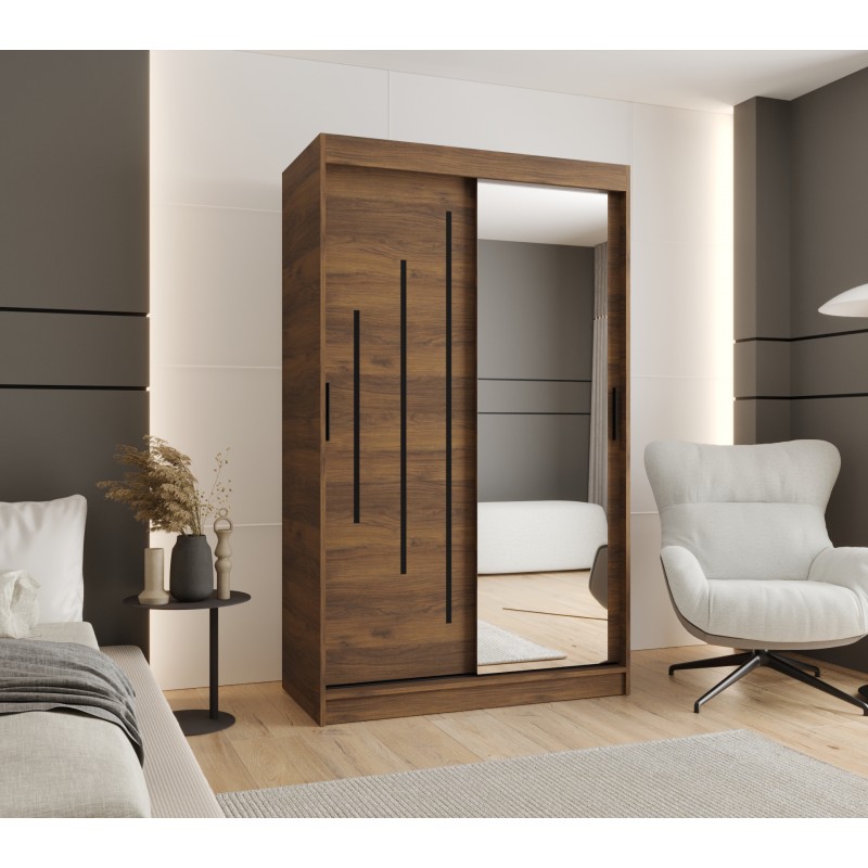 Szafa przesuwna garderoba z lustrem i drążkiem RUBINO Y2 100 kaszmir orzech warmia