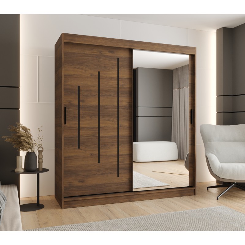 Szafa przesuwna garderoba z lustrem i drążkiem RUBINO Y2 150 kaszmir orzech warmia