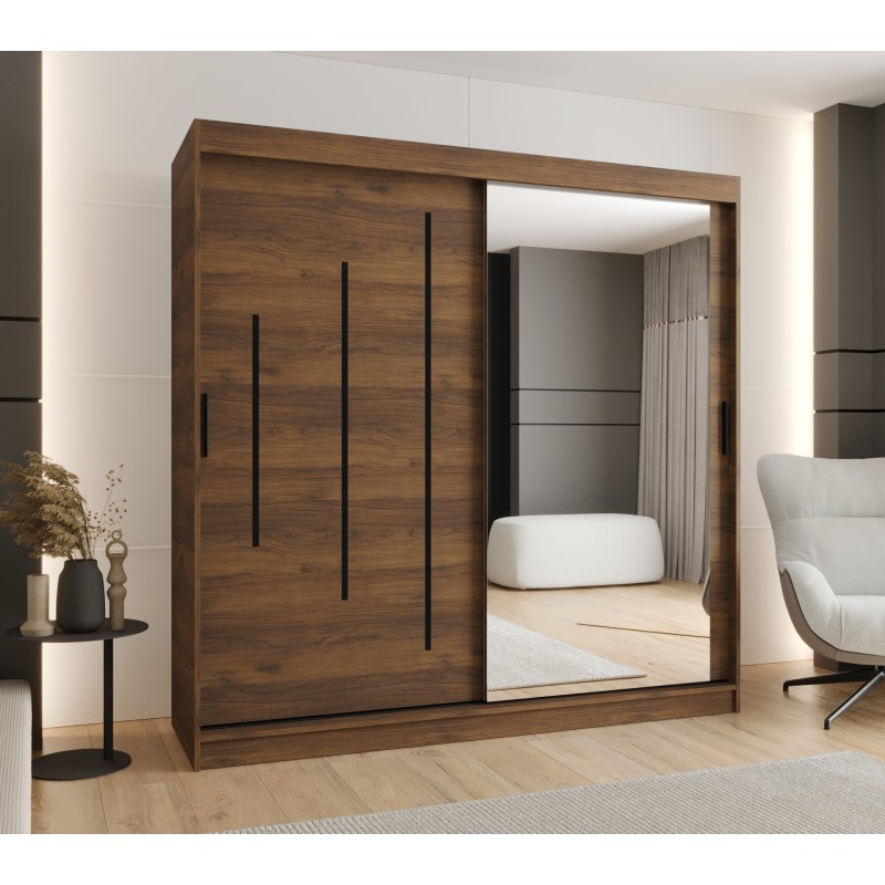 Szafa przesuwna garderoba z lustrem i drążkiem RUBINO Y2 180 kaszmir orzech warmia