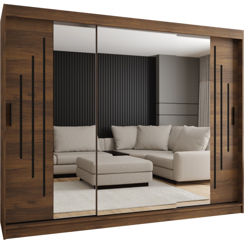 Szafa przesuwna garderoba z lustrem i drążkiem RUBINO Y2 200 kaszmir orzech warmia