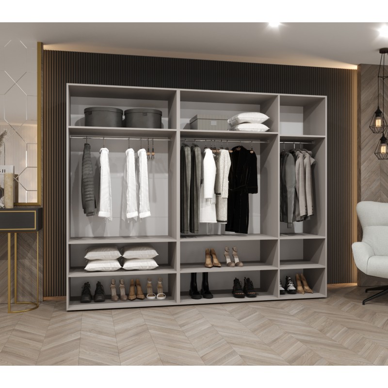 Szafa uchylna z lustrem garderoba z cichym domykiem ubraniowa z półkami SANDI 3 300 głębokość 52 cm wysokość 202 cm (100x3)
