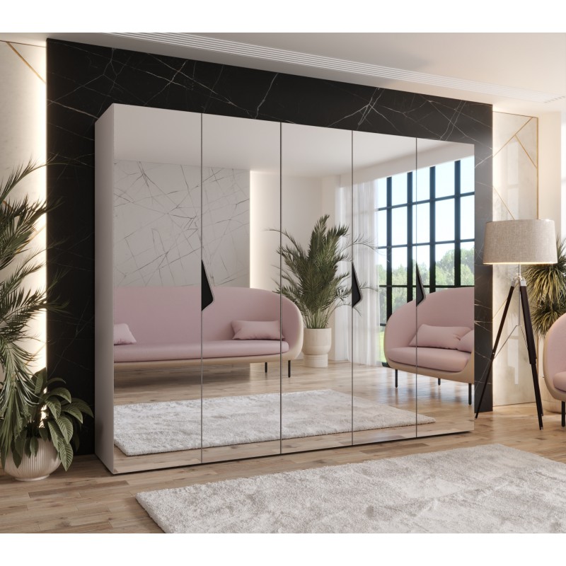 Szafa uchylna z lustrem garderoba z cichym domykiem ubraniowa z półkami SANDI 3 300 głębokość 52 cm wysokość 202 cm (150x2)