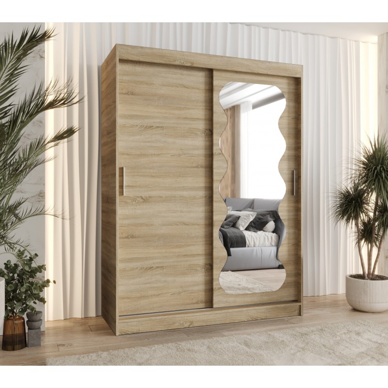 Szafa przesuwna garderoba z lustrem do sypialni SPOTI 180 artisan, biały, czarny, kaszmir, sonoma, orzech