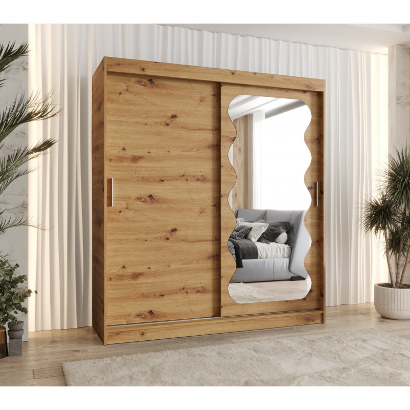 Szafa przesuwna garderoba z lustrem do przedpokoju SPOTI 200 artisan, biały, czarny, kaszmir, sonoma, orzech