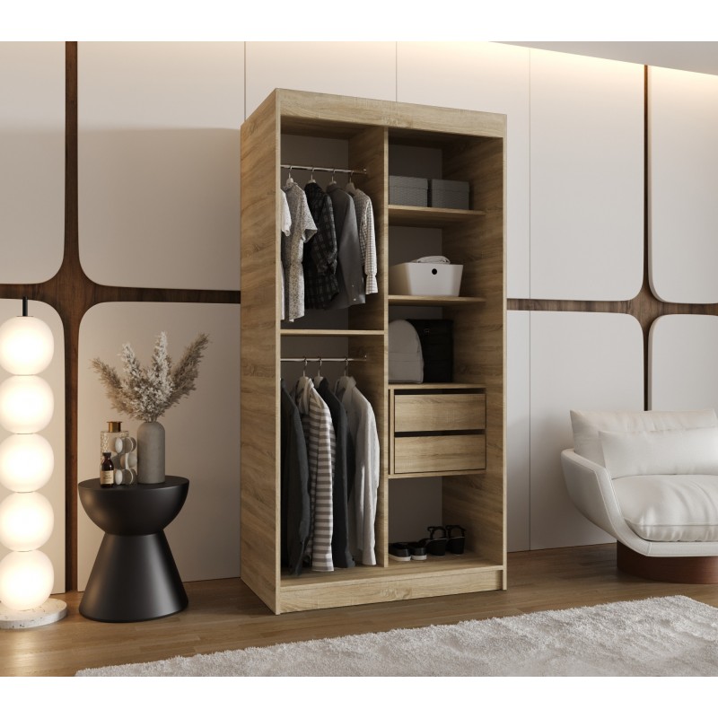 Szafa przesuwna garderoba z lustrem do salonu ULTRA 120 artisan, biały, czarny, kaszmir, sonoma, orzech