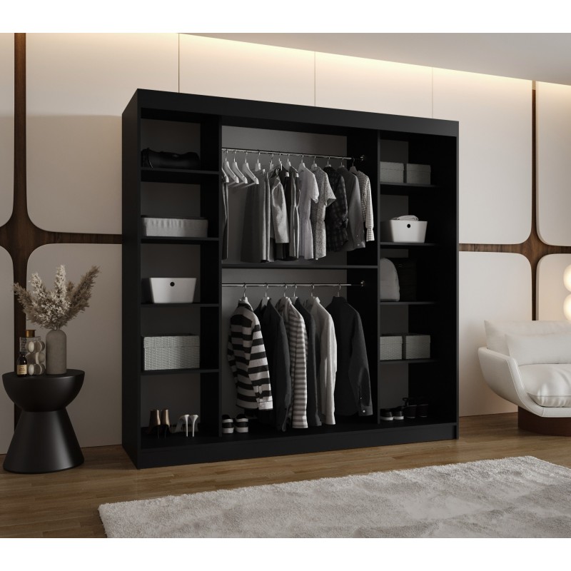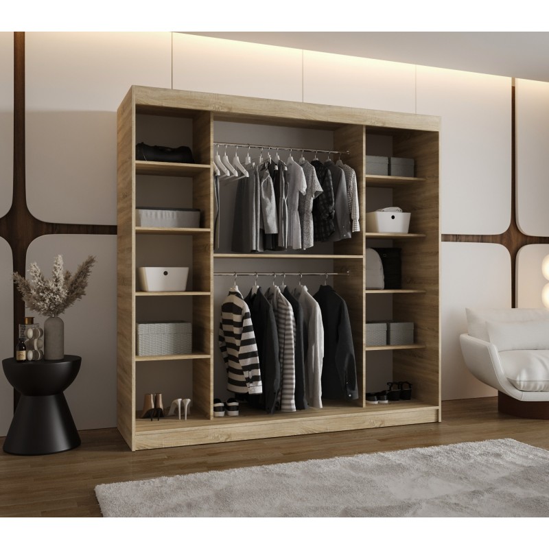 Szafa przesuwna trzydrzwiowa garderoba z lustrem i drążkami ULTRA 250 artisan, biały, czarny, kaszmir, sonoma, orzech