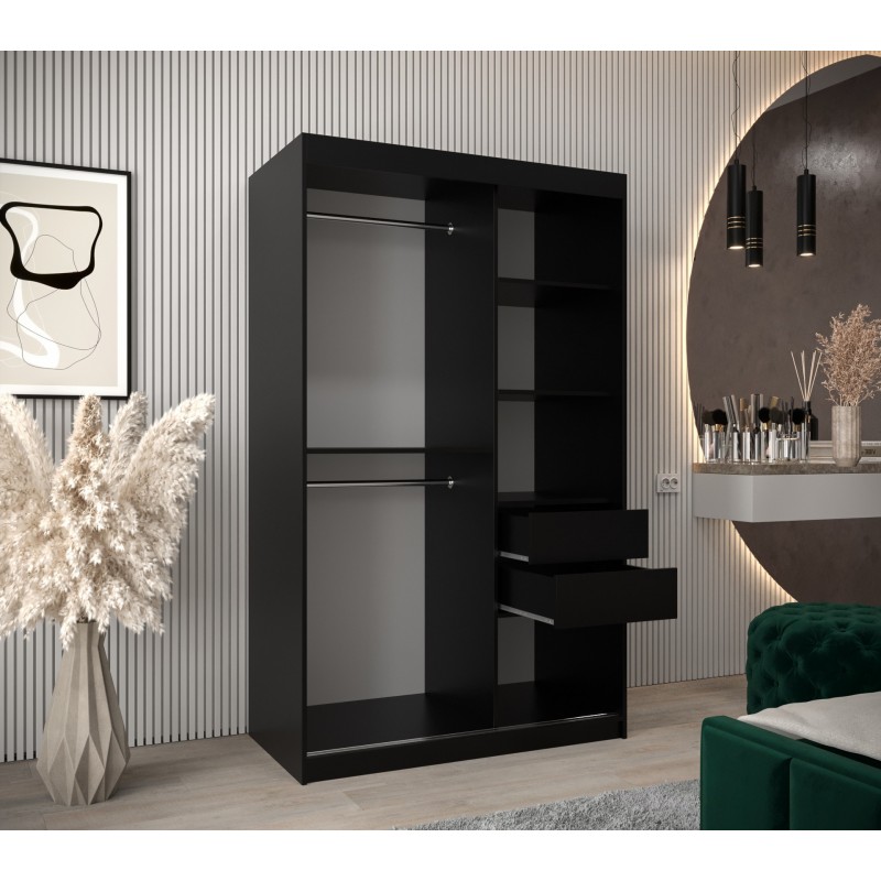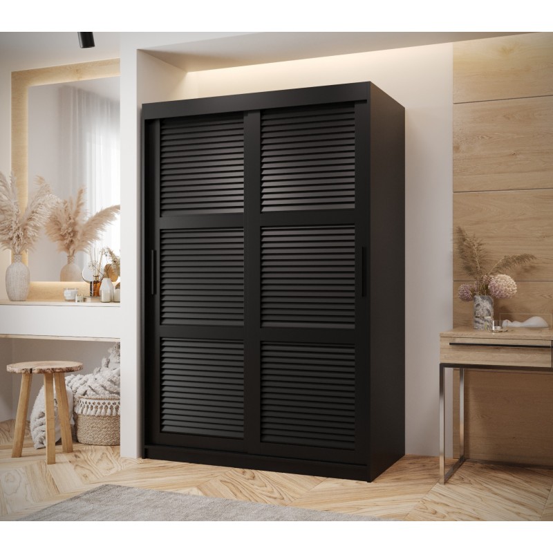 Szafa przesuwna ubraniowa garderoba do salonu ŻALUZJA 150 czarna biała